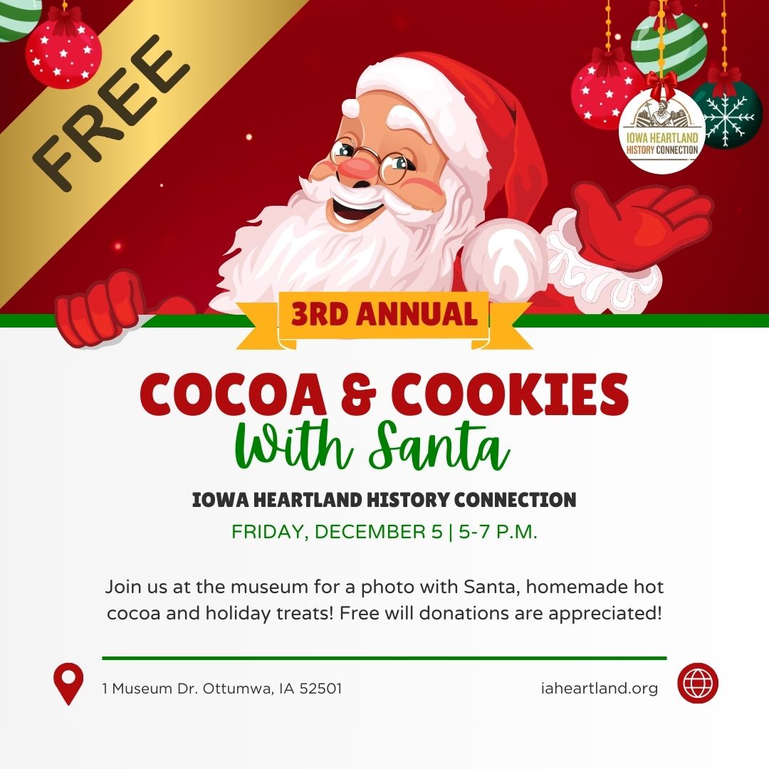 Join us for Cocoa & Cookies with Santa at the Iowa Heartland History Connection! Bring the family and join us at the museum on Friday, December 5, from 5-7 PM for an evening of holiday cheer, Santa photos, and delicious hot cocoa and treats! Your presence would be a gift to us, and free-will donations […]